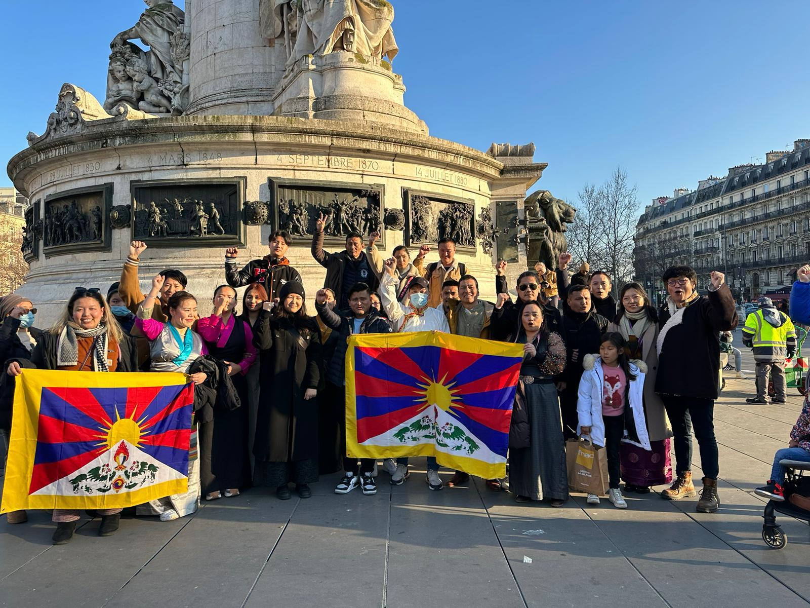 Il y a une prise de parole de Etudiants pour un Tibet Libre, des slogans criés et des danses traditionnelles.