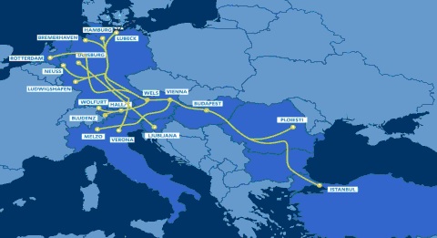L’itinéraire multimodal part du port de Busan en Corée et se termine dans le port de Hambourg.