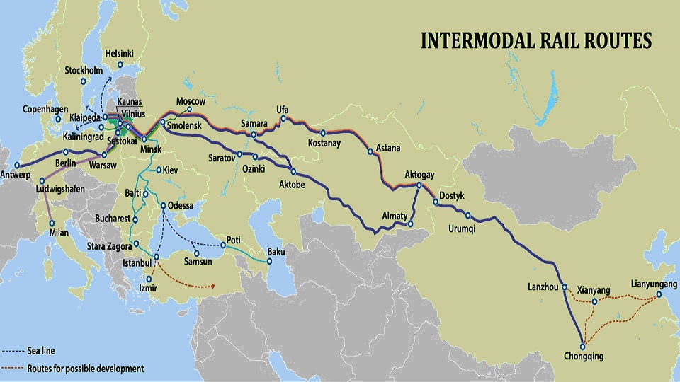 De Busan, les conteneurs sont transportés vers le terminal des ports de Vostochnyy ou Nakhodka en Extrême-Orient russe. Là, ils embarquent à bord d’un train express qui suit la route transsibérienne après avoir traversé la Russie jusqu’au point de passage ukrainien Suzemka-Zernovo pour atteindre le hub de Slawkow en Pologne via le poste frontière Izov-Hrubieszów. Ou par la Lettonie et la Lituanie jusqu’à Kaliningrad. Sa destination finale, étant le port de Hambourg.