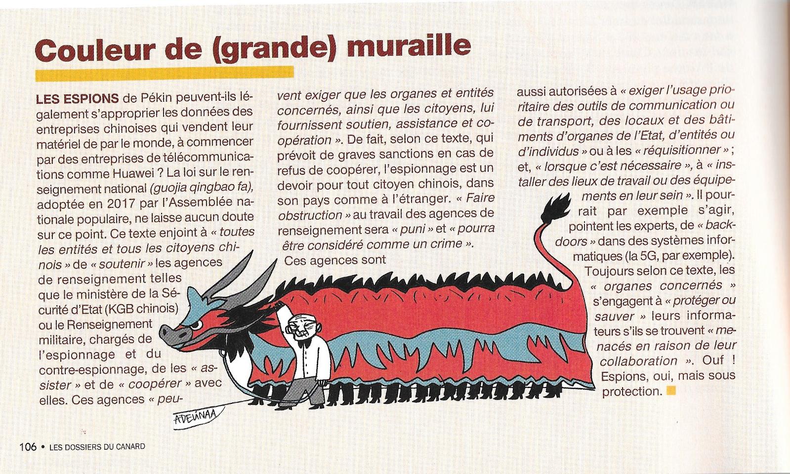 Désormais se déroule en coulisses un immense jeu d’échecs où chacun tente de prendre des pièces à l’autre. Les deux ex-agents de la DGSE, finalement condamnés en 2020 pour trahison au profit de la Chine, furent en leur temps d’assez belles prises. La partie ne fait que commencer puisque l’enjeu, au-delà de l’espionnage industriel, est de déstabiliser les démocraties occidentales et de faire de la Chine la première puissance commerciale, technologique, militaire et diplomatique de la planète à l’horizon 2049, année du centenaire de la création de la République populaire…