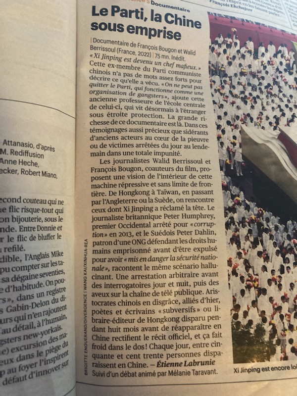 Accueil / Actualités / « Le Parti, la Chine sous emprise » : documentaire (France,2022) 75mn FRANCE 5 Dimanche 15 janvier 2023