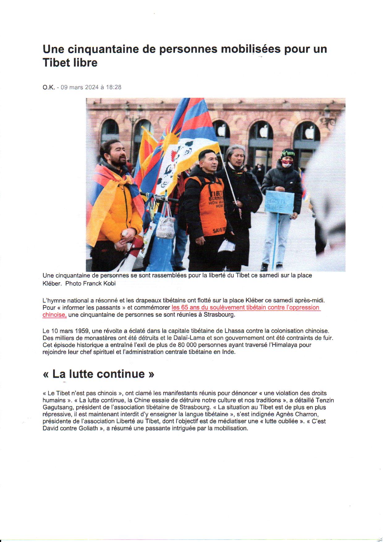 Accueil / Actualités / STRASBOURG PLACE KLEBER 10 mars 2024 avec le TIBET