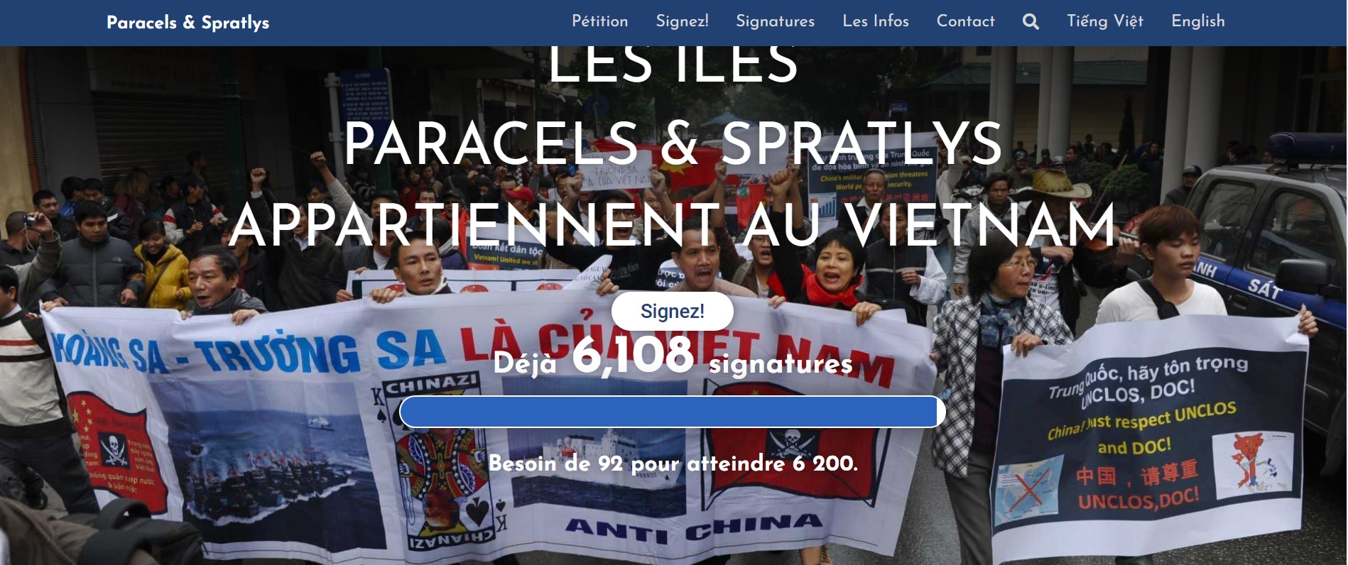 - Depuis cinq décennies, les Vietnamiens et les défenseurs du droit international ont dénoncé l’invasion illégale de la Chine dans les îles Paracels. Nous sommes prêts à le faire pendant encore cinq décennies – jusqu’à ce que les îles Paracels soient réunies avec la mère patrie.