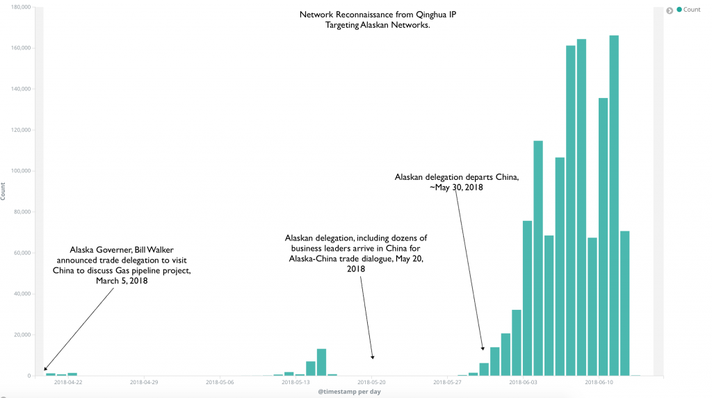 Activités de détection de réseau par Tsinghua IP ciblant des institutions de l’Alaska et coïncidant avec la délégation commerciale de l’Alaska en Chine en mai 2018[/caption]