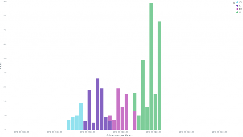 Activité de l’IP de Tsinghua sur les réseaux de Daimler AG sur les ports 139, 22, 443 et 53 entre le 20 et le 24 juin 2018[/caption]