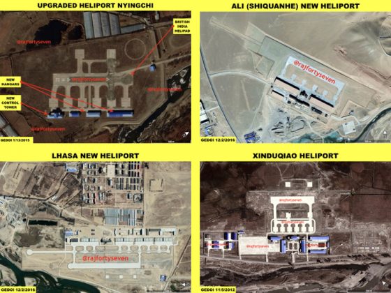 Ces héliports peuvent aisémentaccueillir un régiment d’hélicoptères de combat. Deux des héliports, à Nyingchi et Cona, ont été construits sur des bases de l’ère de l’empire britannique.