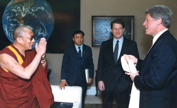 Lodi Gyari observe la rencontre entre Sa Sainteté le Dalaï Lama, le président Clinton et le vice-président Gore, photo-TIC